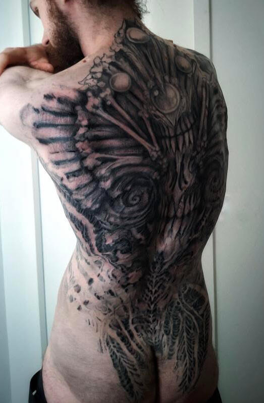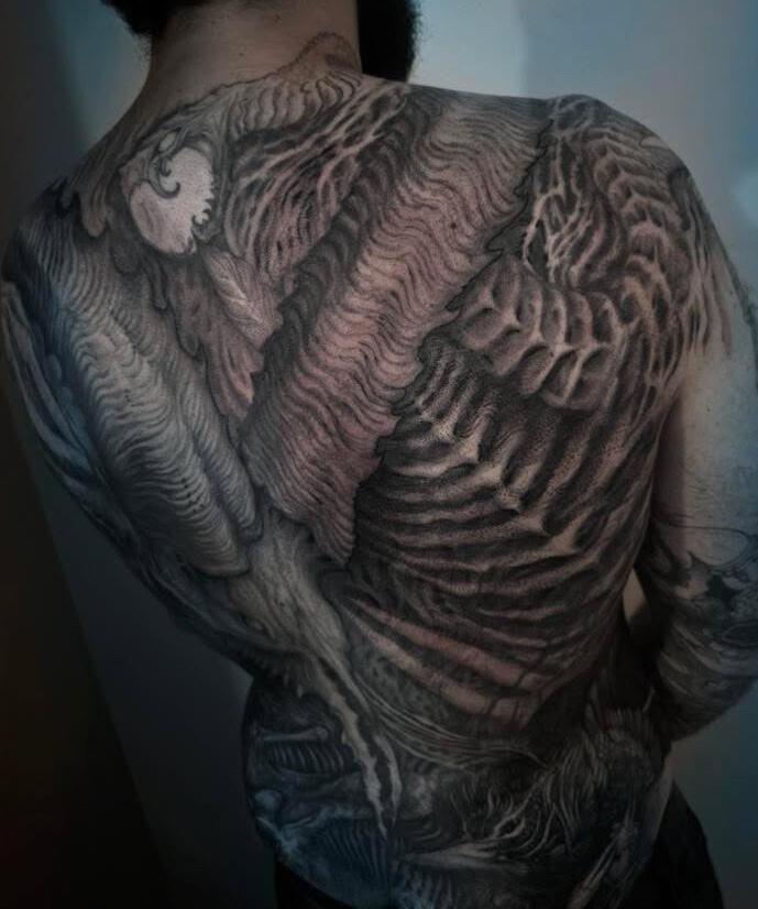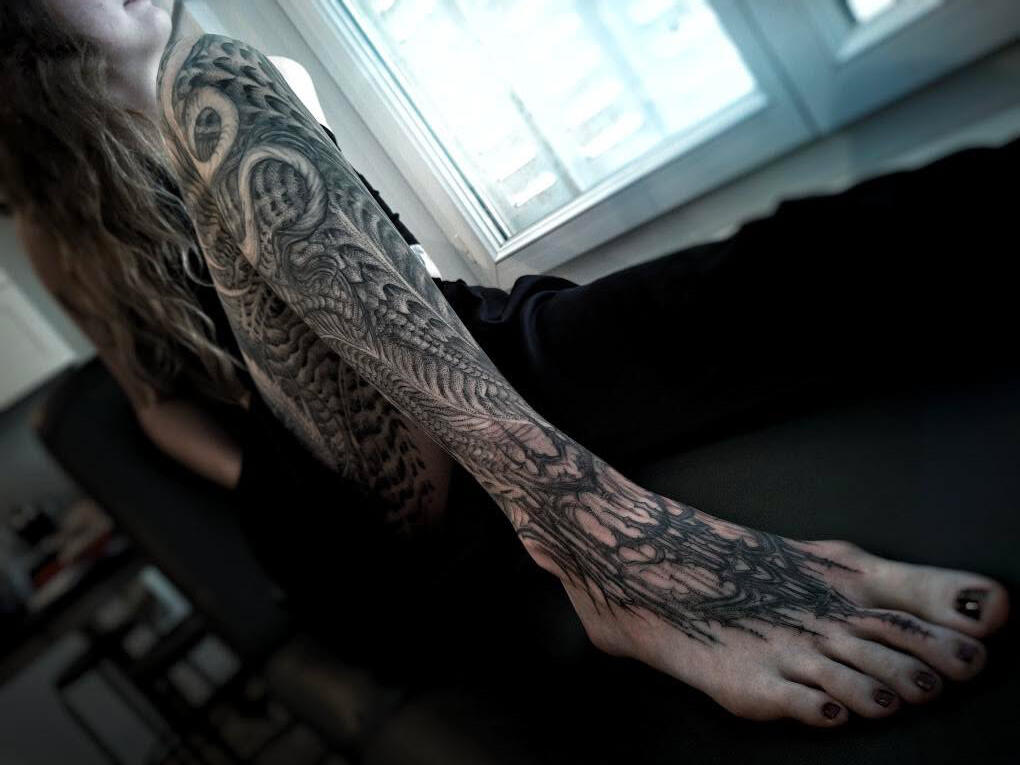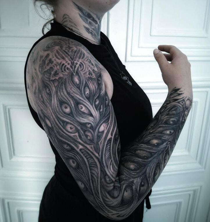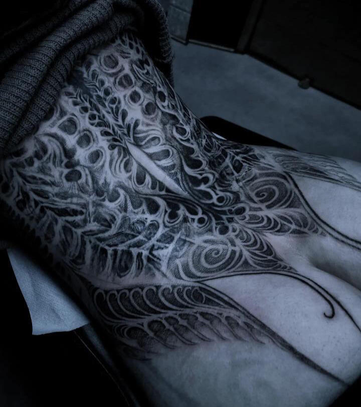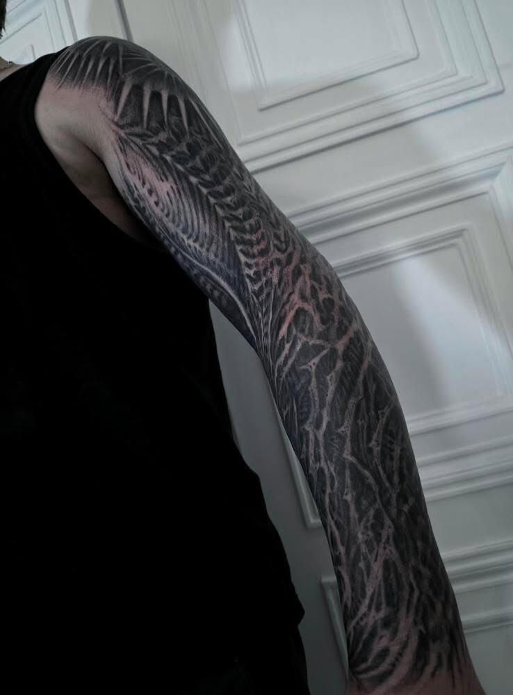 Hello, I’m Placide Suspirii, a multidisciplinary artist based in Lyon, France.My designs often emerge from a place of intuition, as I freehand every line into detailed compositions with a sense of depth and shadow. I draw inspiration from my clients imagination, architecture, nature, and the contrasts found in the space between them: the crumbling buildings, the twisting roots of trees, the geometry that underlies both manmade and organic forms often evolving as the work progresses.Each piece I create is a reflection of those hidden images pulled from our subconscious and the secret language of organic forms, the balance between chaos and order, harmony and beauty. I believe that art, especially tattoo art, is a way to tell stories about where we’ve been, where we’re going, and the places in between.I work exclusively with vegan inks and products because I believe in creating art that aligns with my values. It’s important to me that the work I do is not just meaningful visually but also ethical in every way possible.I’m a native French speaker, but I’m also fluent in English, so whether you’re in Lyon or abroad, I’m happy to work with you in whichever language is most comfortable.