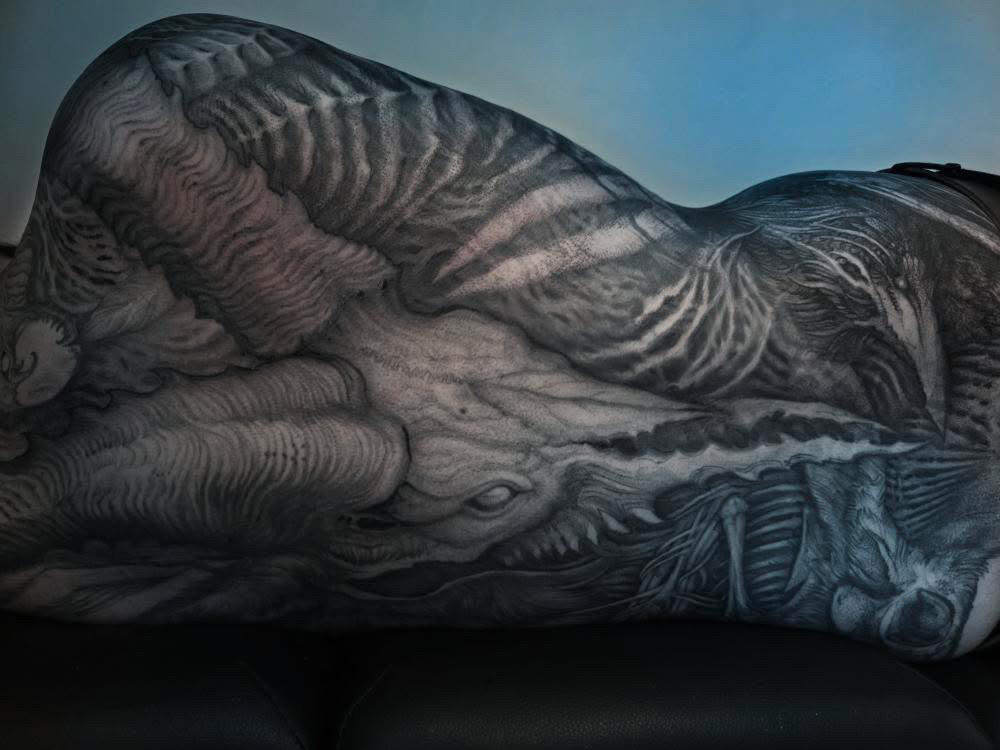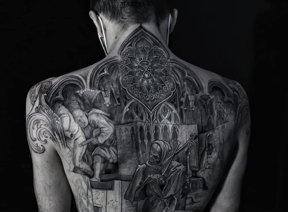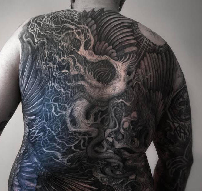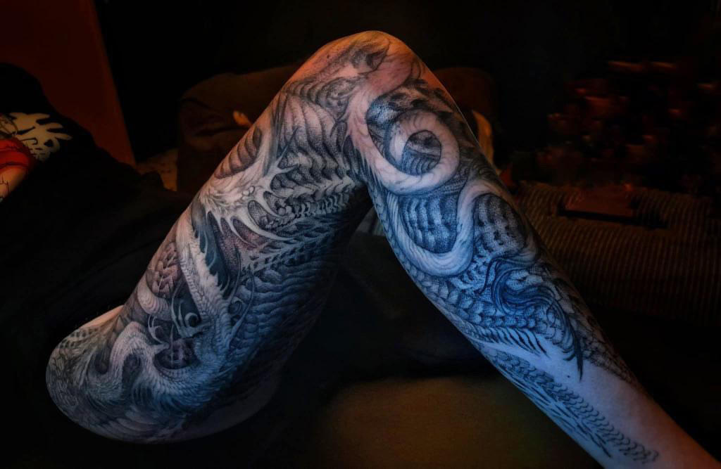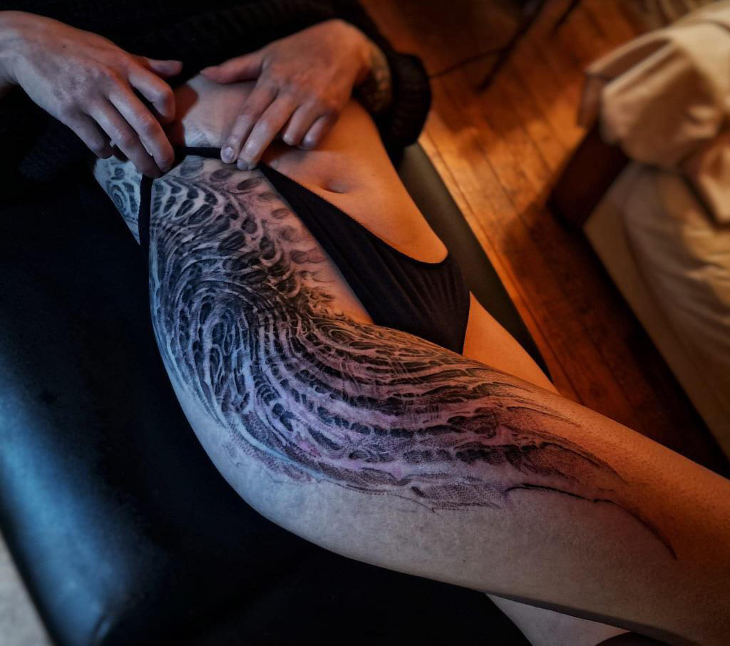 Hello, I’m Placide Suspirii, a multidisciplinary artist based in Lyon, France.My designs often emerge from a place of intuition, as I freehand every line into detailed compositions with a sense of depth and shadow. I draw inspiration from my clients imagination, architecture, nature, and the contrasts found in the space between them: the crumbling buildings, the twisting roots of trees, the geometry that underlies both manmade and organic forms often evolving as the work progresses.Each piece I create is a reflection of those hidden images pulled from our subconscious and the secret language of organic forms, the balance between chaos and order, harmony and beauty. I believe that art, especially tattoo art, is a way to tell stories about where we’ve been, where we’re going, and the places in between.I work exclusively with vegan inks and products because I believe in creating art that aligns with my values. It’s important to me that the work I do is not just meaningful visually but also ethical in every way possible.I’m a native French speaker, but I’m also fluent in English, so whether you’re in Lyon or abroad, I’m happy to work with you in whichever language is most comfortable.